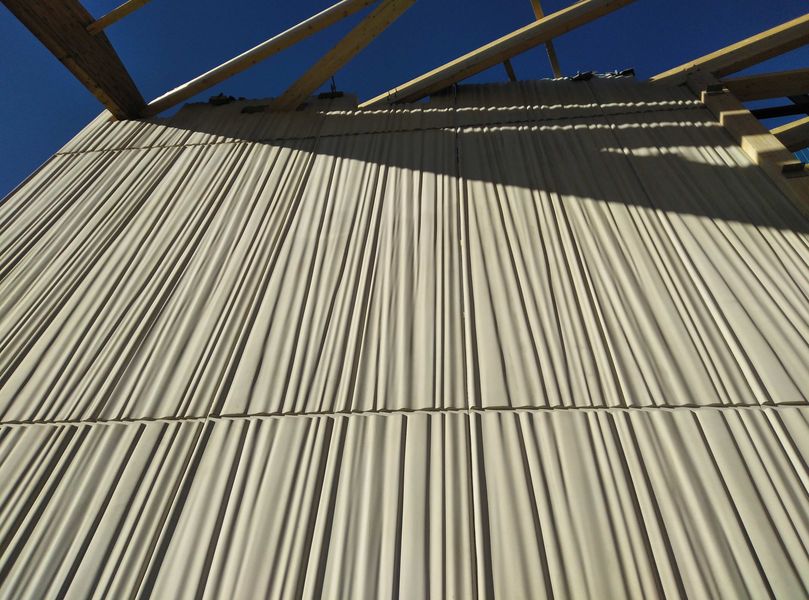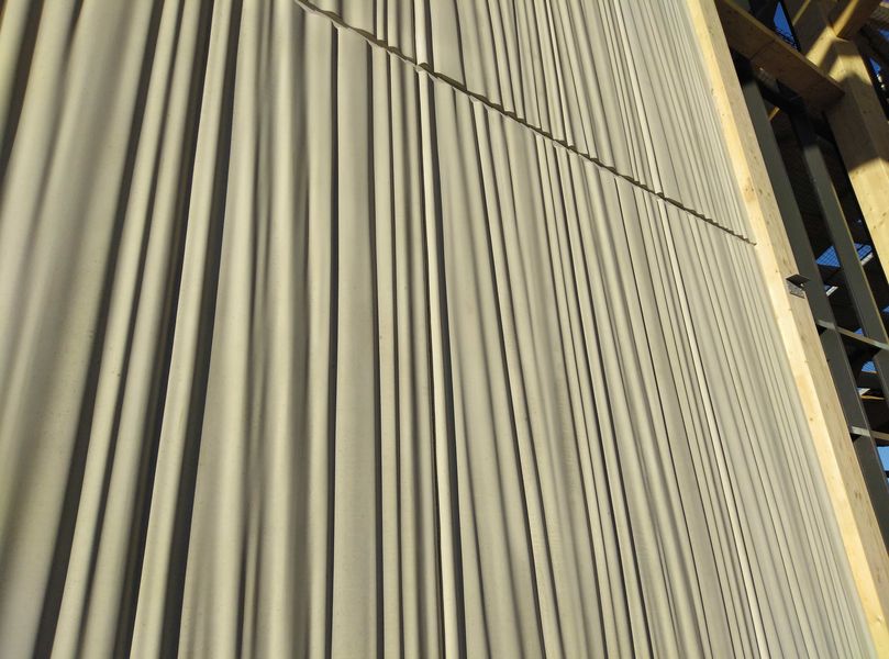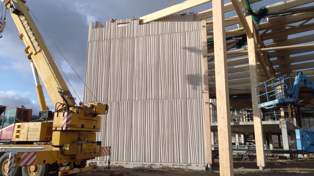 Ingeniería BIM y construcción industrial prefabricada de la estructura de hormigón prefabricado y fachadas mediante panel de hormigón arquitectónico acabado matrizado.
