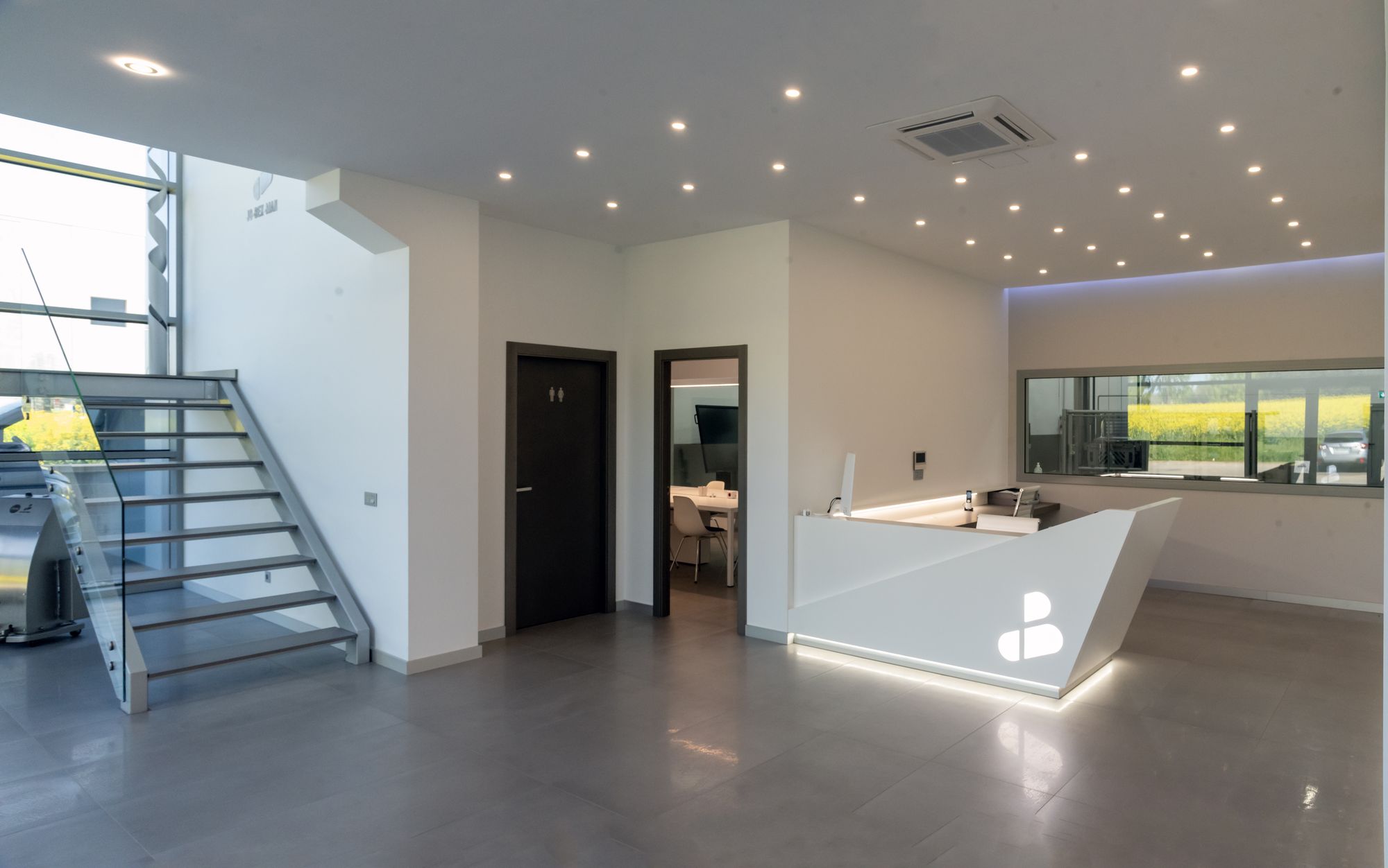 Ingeniería y Construcción llaves en mano de un edificio corporativo de oficinas en dos plantas, y fábrica de maquinaria cárnica, en el polígono industrial de Montfullà (Bescanó).